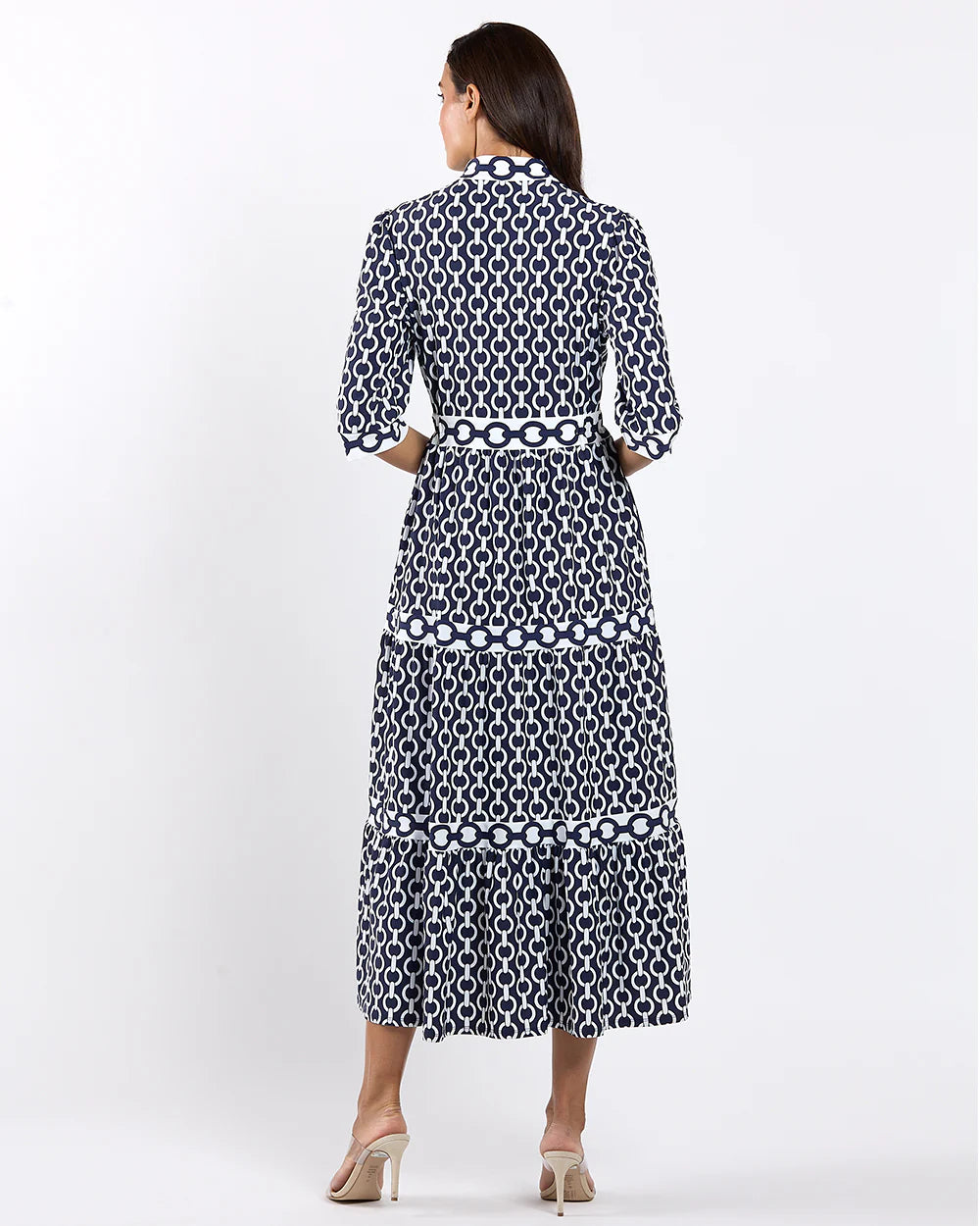 A true customer favorite, the Jude Connally Candy Dress delivers effortless elegance with everyday comfort. This beautiful maxi dress features 3/4-length sleeves, a flattering mandarin neckline, and soft puff shoulders for a feminine touch. Contrasting tiered panels create movement and visual interest, while functional pockets add practicality without sacrificing style.