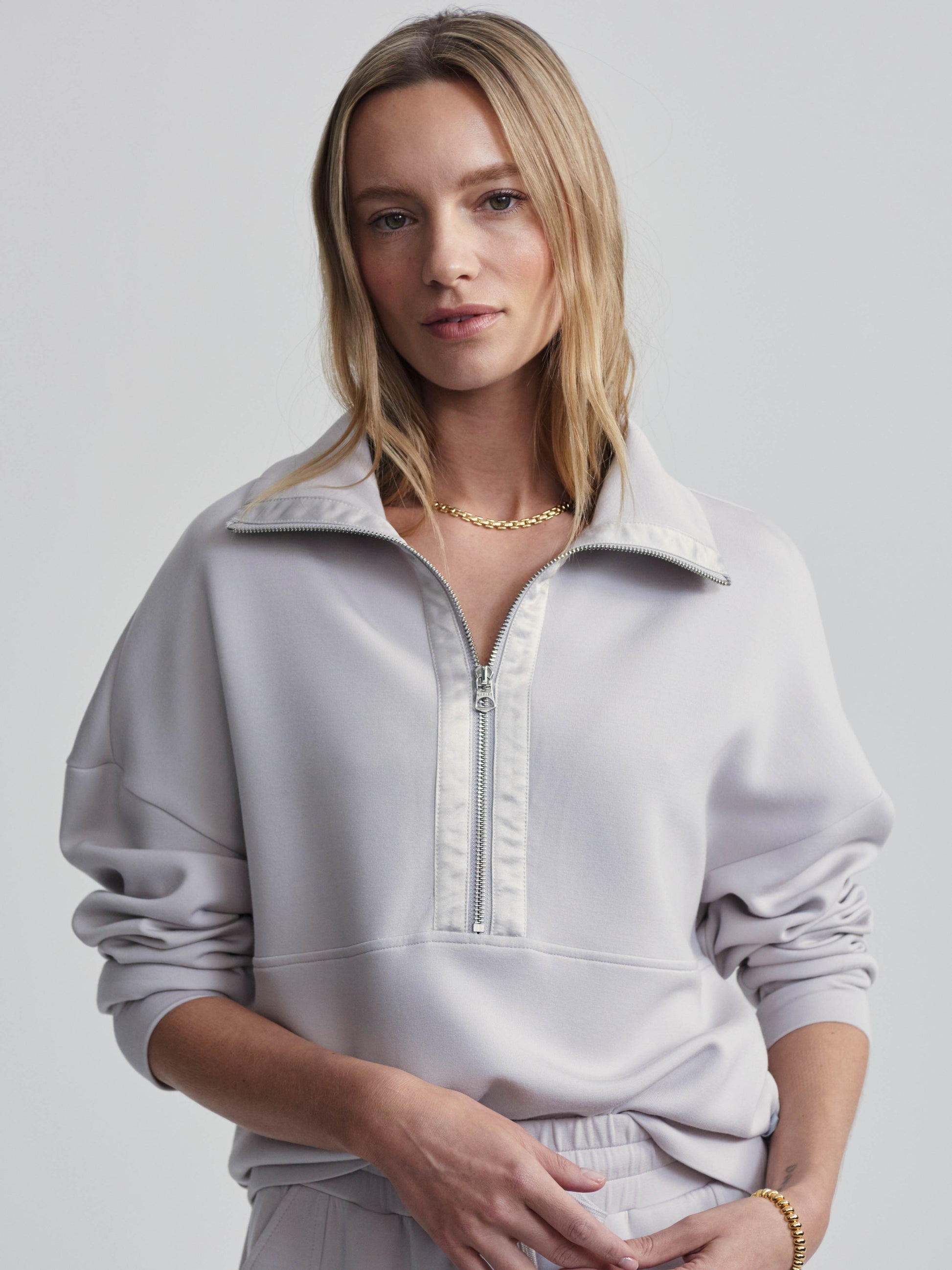 Designed with drop shoulders and sateen trim detailing, the Keller is made in the signature year-round DoubleSoft® fabric to a boxy silhouette. The slim sleeves and high neck bring a contemporary touch to the classic sweat.