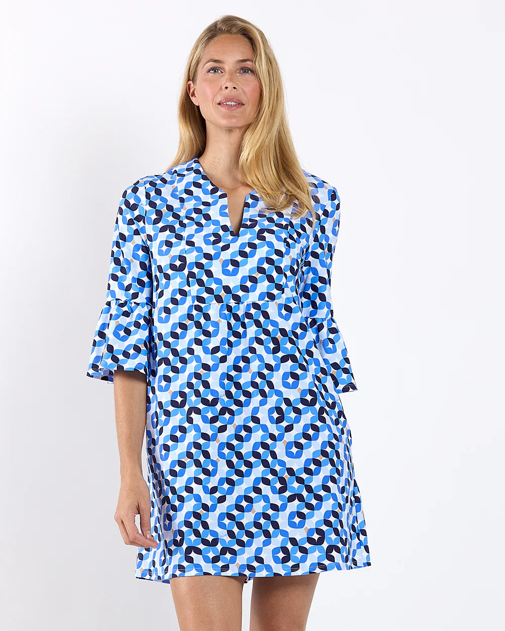 The Jude Connally Kerry Dress features a fun, modern silhouette designed for effortless wear. With a breezy, swingy shape that skims off the body, this dress offers both comfort and style. A flattering V-neckline and feminine flutter sleeves add soft structure, while functional side pockets bring everyday practicality.