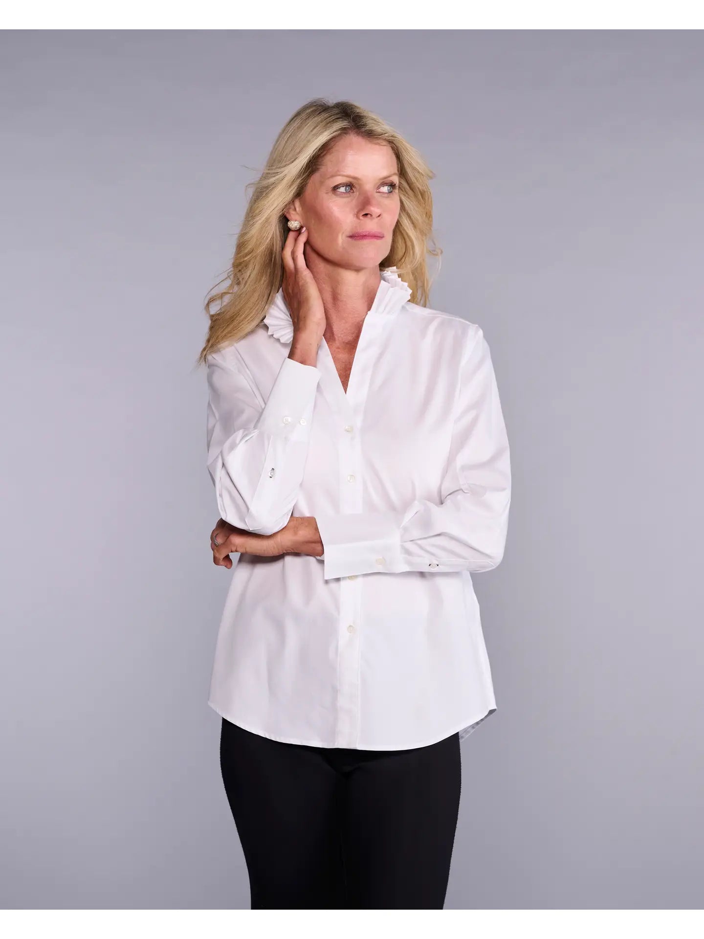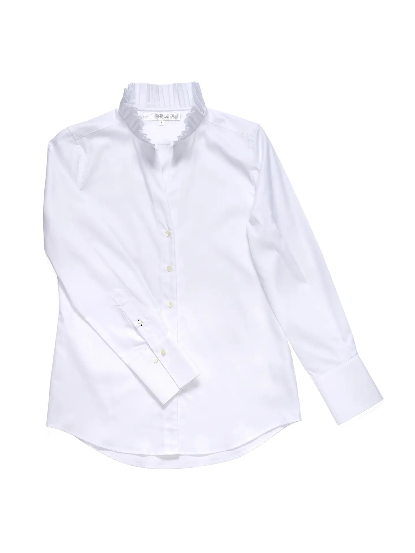 Introducing The Pleated Collar League—a tailored, modern take on a classic menswear shirt, now available in a crisp white easy-care fabric. Crafted in crisp, 100% cotton, this fitted-style shirt is designed to flatter the feminine form while channeling a subtly structured, androgynous edge.