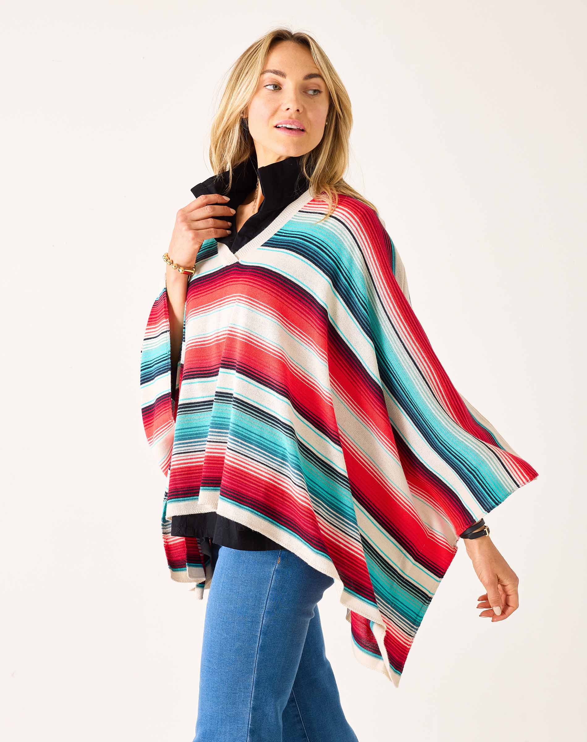 Boho-chic never felt so effortless. The Avalon Poncho in San Miguel Stripe is your go-to layer for cozy comfort and standout style. With its soft, lightweight knit, flattering V-neck, and flowing silhouette, it’s made for transitional days and cool nights — whether you're out exploring or curled up by the fire.