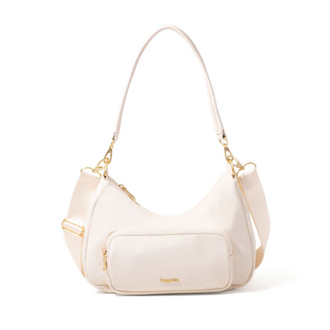 Crafted in a lightweight yet durable twill fabric, the Savannah offers thoughtful interior organization, including RFID-protected credit card slots, a lipstick loop, privacy pockets, and a key leash—plus a handy pocket perfect for your phone or glasses. Style and security, all in one stylish package.