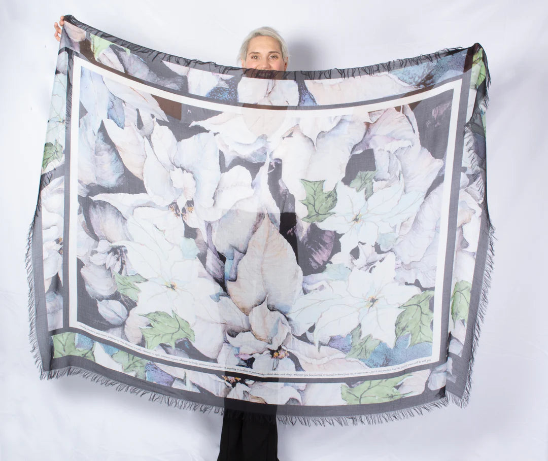 Wrap yourself in beauty, meaning, and elegance with these Mammoth-size luxury silk modal scarf, measuring 140cm x 180cm — generously sized to be styled in countless ways or worn as a "love wrap".