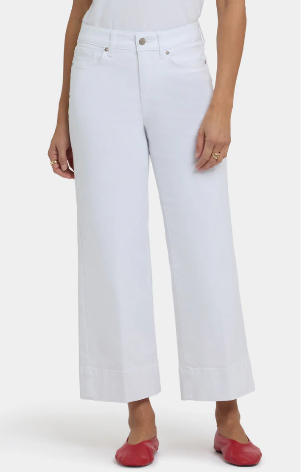 NYDJ Teresa Wide Leg Ankle Jeans with 3" Hem – White